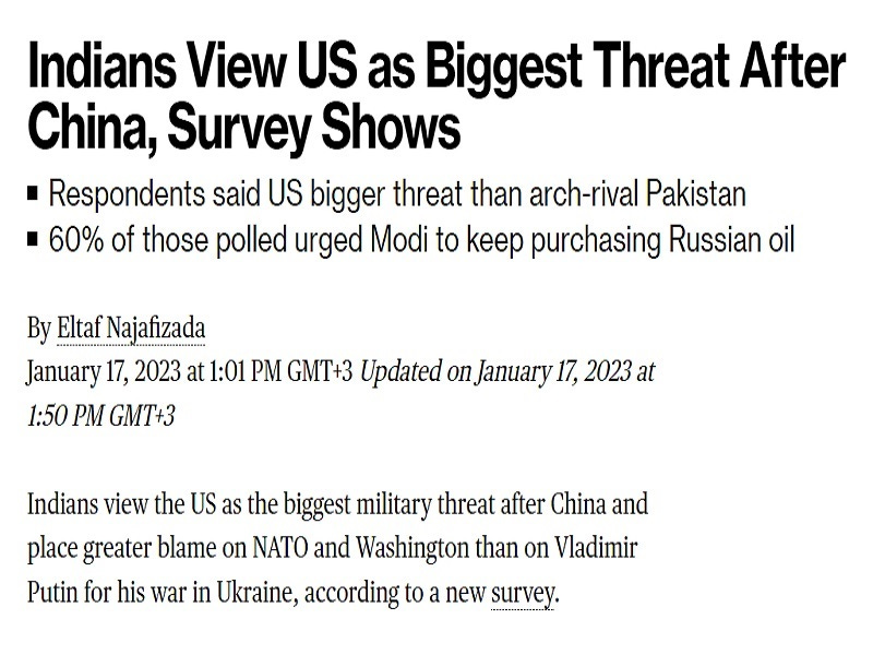 The latest survey on Indians’ attitude towards international affairs, the results of which were extended credence by Bloomberg uncritically reporting on them, reveals that the contemporary New Cold War context has made Indians increasingly suspicious of the US’ intentions. They’re seemingly concerned that America doesn’t have their country’s best interests in mind, which is sensible considering its unprecedented pressure campaign against India last year.