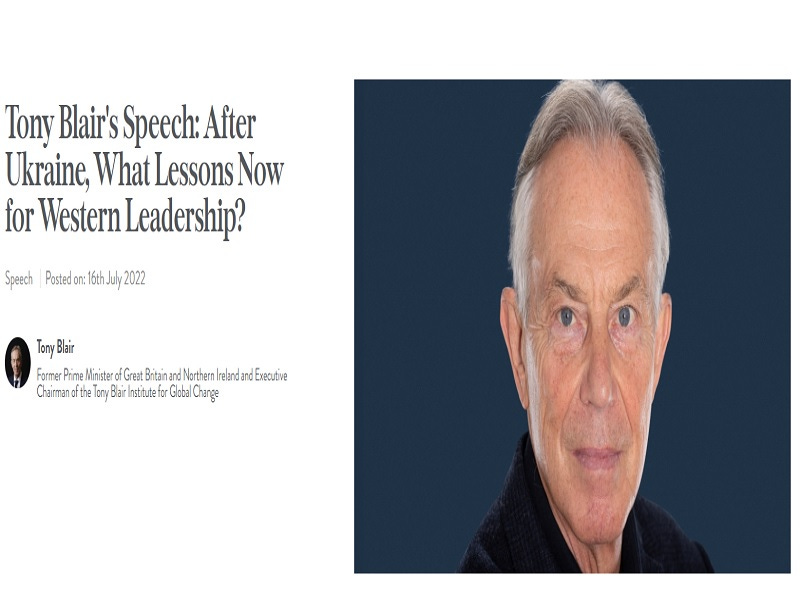 Blair’s first observation that stands out is his opening claim that the West is at an inflection point similar to the ones that it experienced in 1945 and 1980, the first of which resulted in the creation of new Western institutions while the second ended up convincing the West to pursue the complete collapse of the erstwhile Soviet Union. He laments the economic and financial stagnation that’s set in over his civilization in recent times and led to an explosion in populist movements. In his eyes, the West lacks vision for dealing with domestic, international, and technological challenges, the last of which he strongly alludes to being what many call the “Great Reset”/”Fourth Industrial Revolution” (GR/4IR). Blair believes, however, that the Ukrainian Conflict has imbued the West with a renewed sense of purpose.