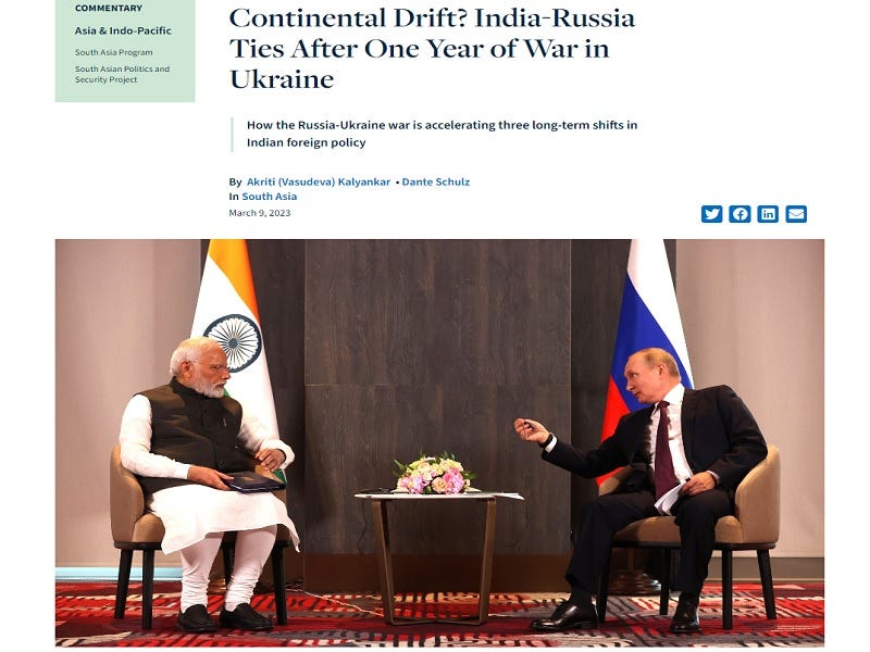 The partially US Government-funded Stimson Center just published a wildly inaccurate assessment of Russian-Indian relations in its latest report titled “Continental Drift? India-Russia Ties After One Year of War in Ukraine”. There are so many misleading claims contained within the text that the present piece is entirely devoted to debunking its authors’ drivel on this subject. What follows is a point-by-point fact-check aimed at correcting its targeted audience’s perceptions about their ties.