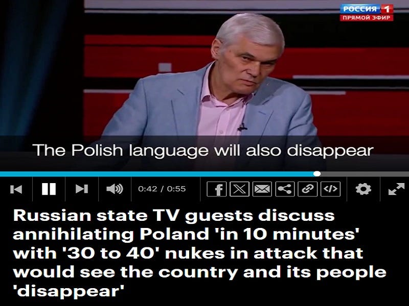 Sivkov didn’t describe the scenario in which Russia would use strategic nuclear weapons against only Poland, and he also just as unrealistically assumed that the US wouldn’t nuke Russia in response to the destruction of its NATO ally, both of which reflect poorly on his credentials as a military expert. No explanation was given either for why Russia would nuke big cities full of civilians instead of military sites, and his words about Poland, its people, and even their language disappearing are problematic.