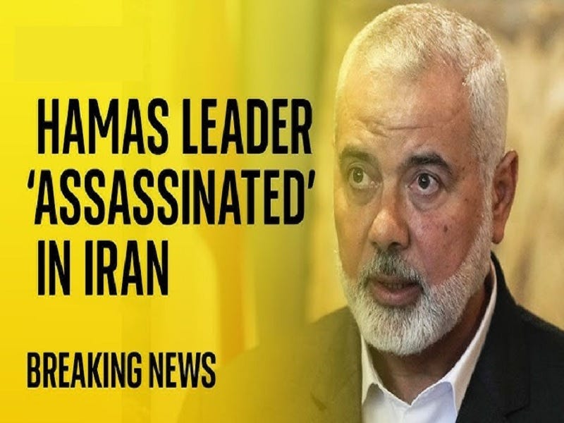 Haniyeh’s assassination is a watershed event in the latest Israeli-Hamas War, which is now a regional Israeli-Iranian proxy war, since it greatly spikes the risk of everything spiraling into “mutually assured destruction”.