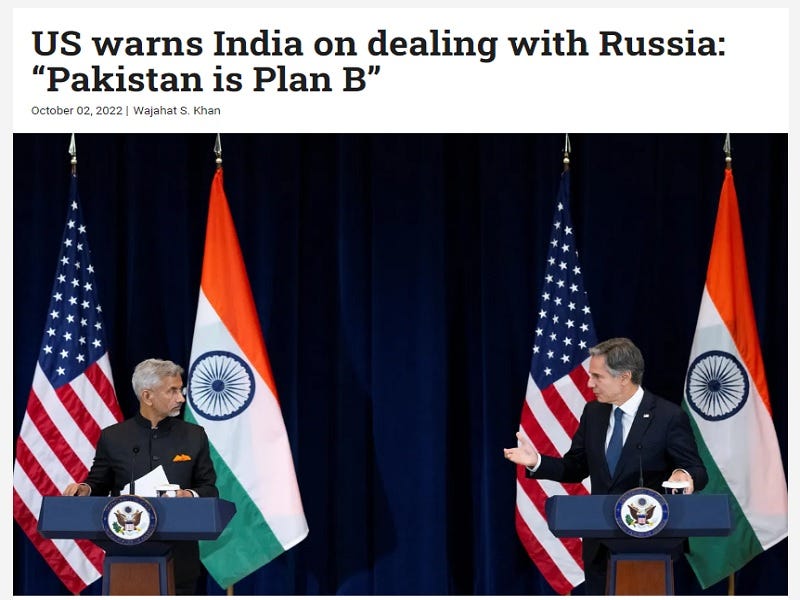 GZERO Media, the online information outlet founded by the Eurasia Group’s Ian Bremmer, published a piece over the weekend about how “US warns India on dealing with Russia: ‘Pakistan is Plan B’”. Citing experts like the Rand Corporation’s Derek Grossman, the Atlantic Council’s Uzair Younis, and the Wilson Center’s Michael Kugelman – whose institutions are all partially financed by the US Government (USG) despite this fact not being disclosed in the text – the article’s primary angle is that American strategy towards South Asia has returned to balancing India and Pakistan. This policy recalibration is regarded as the result of Delhi’s refusal to distance itself from Moscow and Islamabad’s recent pro-US overtures.
