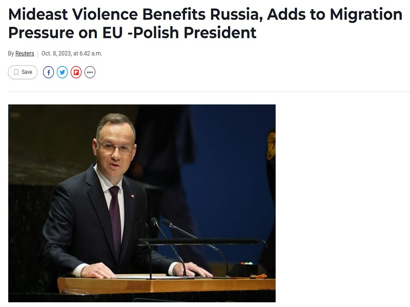 And finally, the Polish President assumes that Russian interests aren’t adversely affected by instability in West Asia, though this isn’t true since the Kremlin fears that the latest Israeli-Hamas war might expand throughout the region. In the event that it spreads to Syria, Russia’s anti-terrorist successes over the past eight years risk being reversed if Israel initiates a large-scale bombing campaign against the IRGC and Hezbollah, which could create space for ISIS’ and other terrorist groups’ revival.