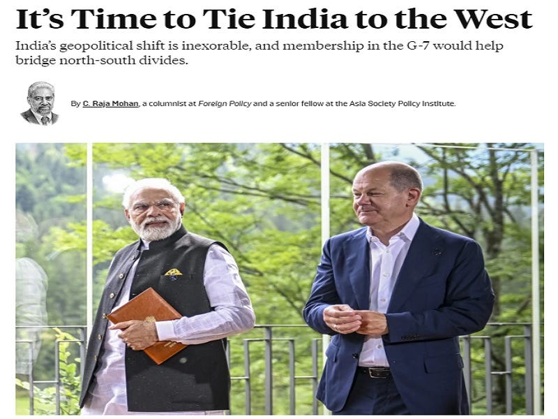 C. Raja Mohan is a noted Indian intellectual whose weekly articles represent his class’ liberal-globalist worldview. The common thread connecting everything that he’s published in the year since Russia’s special operation started is his suggestion that India subordinate itself to the US-led West’s Golden Billion in the New Cold War. This policy proposal was once again pushed in his latest article for Foreign Policy magazine where he declared that “It’s Time To Tie India To The West”.