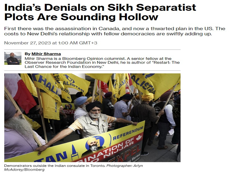 Bloomberg’s Mihir Sharma published a piece on Monday about how “India’s Denials on Sikh Separatist Plots Are Sounding Hollow”. After strongly implying that there’s credence to Canada’s claim that India assassinated a Delhi-designated terrorist-separatist and the US’ latest one that it tried to do the same to another such individual, he then argues why this was supposedly a poor policy on India’s part. What Sharma avoids talking about, however, is why the Anglosphere hosts people like that in the first place.