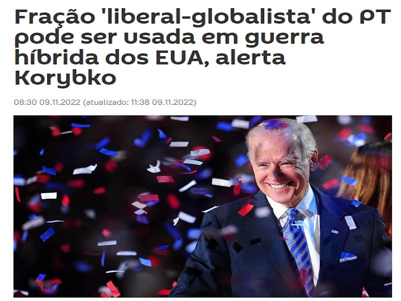 I’m sharing the English version of the interview that I gave to Sputnik Brasil, which was originally published in Portuguese on 9 November under the title “Fração 'liberal-globalista' do PT pode ser usada em guerra híbrida dos EUA, alerta Korybko”.
