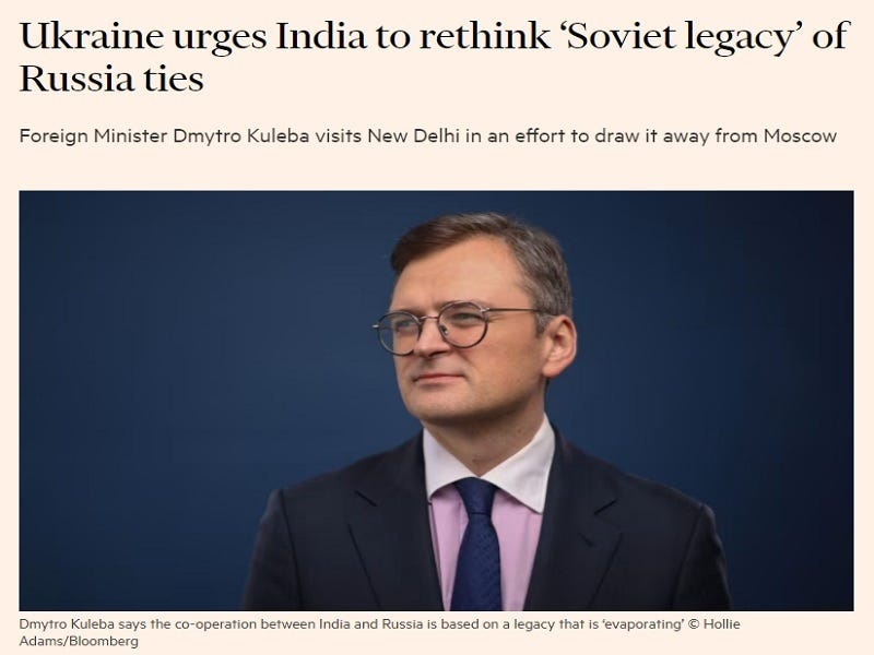 Ukrainian Foreign Minister Dmitry Kuleba visited India last week in the highest-profile trip by one of his country’s officials since the special operation began two years ago. Hopes were high on Kiev’s side that it could convince Delhi to dump Moscow, while some observers hoped that maybe his regime would see the light and request India to mediate a resolution to the NATO-Russian proxy war. Neither ended up happening and the entire trip was a dud as is known from what he told the Financial Times afterwards.