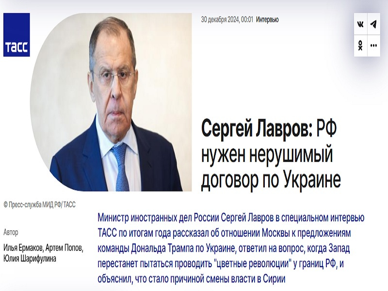 Russian Foreign Minister Sergey Lavrov gave a year-end interview with TASS where he touched upon the most important developments from the past year that’ll likely shape events in 2025. From the get-go, he rejected Trump’s reported plans to freeze the conflict, delay Ukraine’s membership in NATO, and deploy Western peacekeepers there and reminded everyone of the terms that Putin declared for ending the special operation. Russia also requires legally binding agreements that address the root of the conflict.