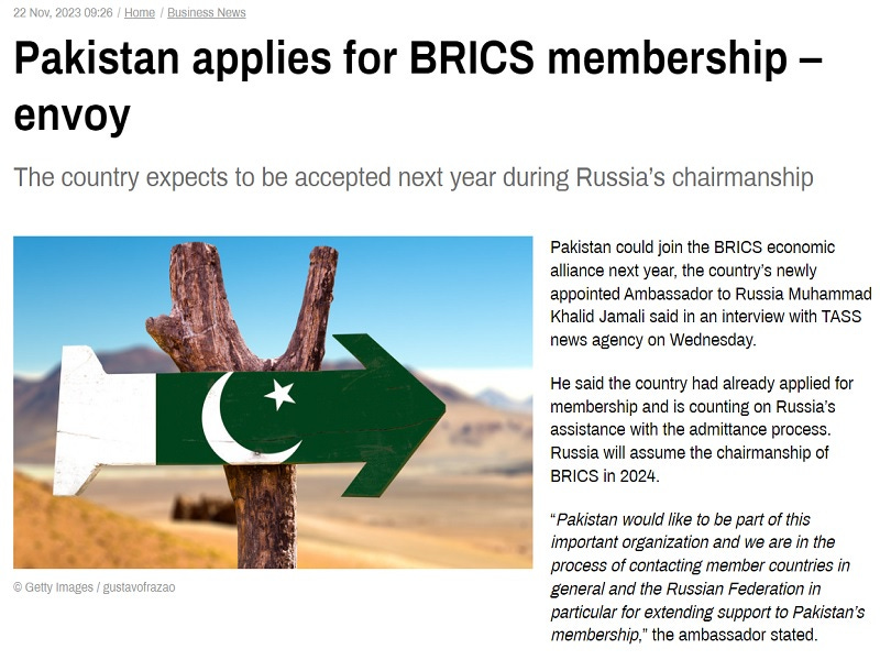 Newly appointed Pakistani Ambassador to Russia Muhammad Khalid Jamali told TASS that Pakistan expects Russia to support its BRICS’ membership bid. It was earlier assessed last spring that “There’s No Credible Chance Of Pakistan Joining BRICS Anytime Soon” after Express Tribune hyped up that scenario ahead of the group’s summit in late August. After its expansion at that event, which doubled its members, Pakistan’s hopes were apparently renewed that it might join during next year’s one in Russia.