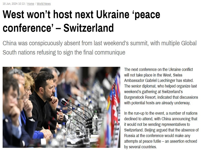 Swiss Ambassador Gabriel Luechinger acknowledged that last weekend’s talks that he helped organize were insufficient for bringing peace to Ukraine and that the next ones will therefore be much more different. In his words, “What is clear is that the next peace summit will not be in Europe, and will not take place in the West”, and “Russia should be integrated in the peace process in some way.” This sensible stance is long-overdue and was brought about by the confluence of three key factors.