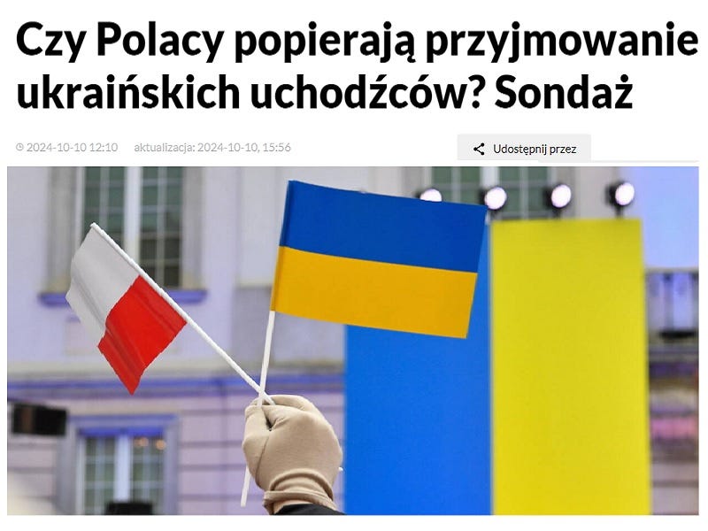 That may well be but isn't it, for the most part, because they believe taking refugees from the Ukraine may somehow work to allow them to take fewer refugees from victim regions of NATO wars, e.g. every one Ukrainian is worth at least one or more from Syria or Lybia, etc., etc. (now with the 'healthy' (ethnically-cleansed) additions of Gaza and Lebanon, etc., etc); ESPECIALLY if the victims of NATO's wars have found their way to Poland from the other side of the new (NATO fence) iron curtain?
