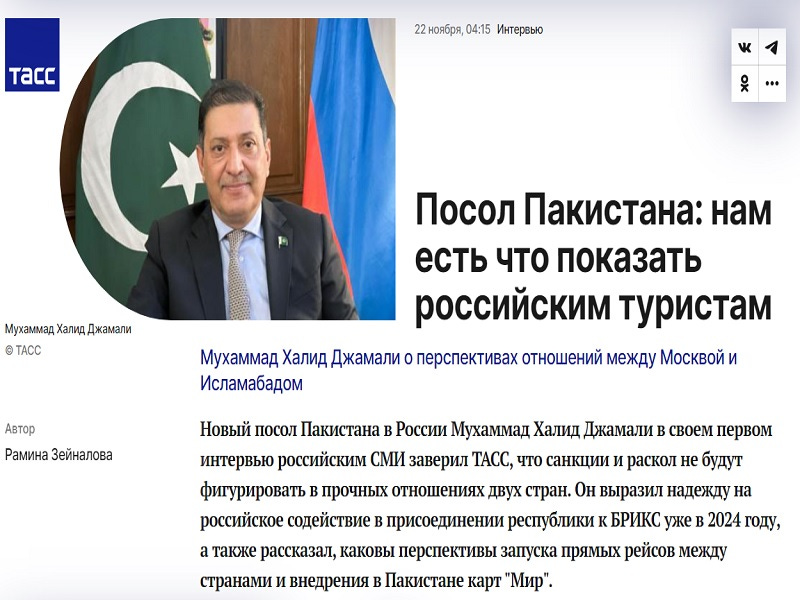 New Pakistani Ambassador to Russia Muhammad Khalid Jamali gave his first interview to TASS, which was published in Russian here but can be read by anyone using Google Translate. He hopes for more mutually beneficial cooperation, particularly in the energy sector, though it remains to be seen whether his country’s US-leaning de facto military leadership will allow this. After all, they’ve dillydallied on this since April 2022’s post-modern coup, and even reportedly sent arms to Ukraine over the past year too.