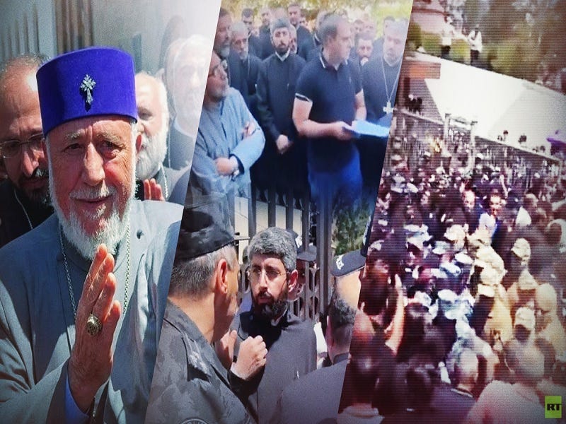 The earlier mentioned arrests right around the time of his visit prompted RT chief Margarita Simonyan to tweet the following: “Since returning from Turkey, Mr Pashinyan - or is it Effendi Pashinyan now - has unleashed a campaign of smears, searches and threats against the Armenian Apostolic Church and its head Catholicos Karekin II. To Armenians living in their homeland: what are you waiting for? For your sons to be beheaded, and your daughters to be enslaved into harems - again?”