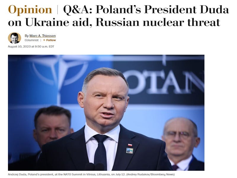 It was against this backdrop that Duda did the previously unthinkable by telling one of the US’ most influential Mainstream Media outlets that Kiev isn’t doing the West any favors by fighting Russia and that its counteroffensive failed. Granted, he conveyed these two points in a “polite” way that signaled his continued support for NATO’s proxy war on Russia through Ukraine, but it’s still an unforgivable offense from that regime’s perspective.