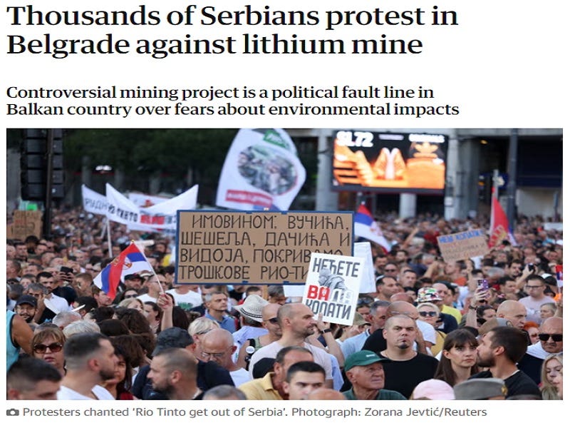 What’s missing from their report is the fact that there’s genuine patriotic furor over Serbia’s deal with the German-led EU last month to restore Rio Tinto’s license to extract lithium from the country after it was rescinded in 2022 under popular pressure. President of the Srebrenica Historical Project Stefan Karganovic wrote about this in early July in his analysis for the Strategic Culture Foundation titled “The Lithium cabal defeated in Bolivia, but winning in Serbia.”