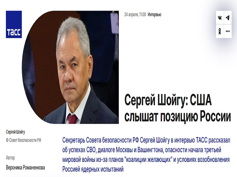 Former Russian Defense Minister and incumbent Secretary of the Security Council Sergey Shoigu gave a very detailed interview to TASS about their country’s security interests. It’s a lengthy read though so some might not have the time to go through it in full. That’s why the present piece will only draw attention to the top five takeaways pertaining to the chances of a ceasefire, the scenario of Western peacekeepers in Ukraine, NATO threats, strategic security, and Russia’s Eurasian security initiative:
