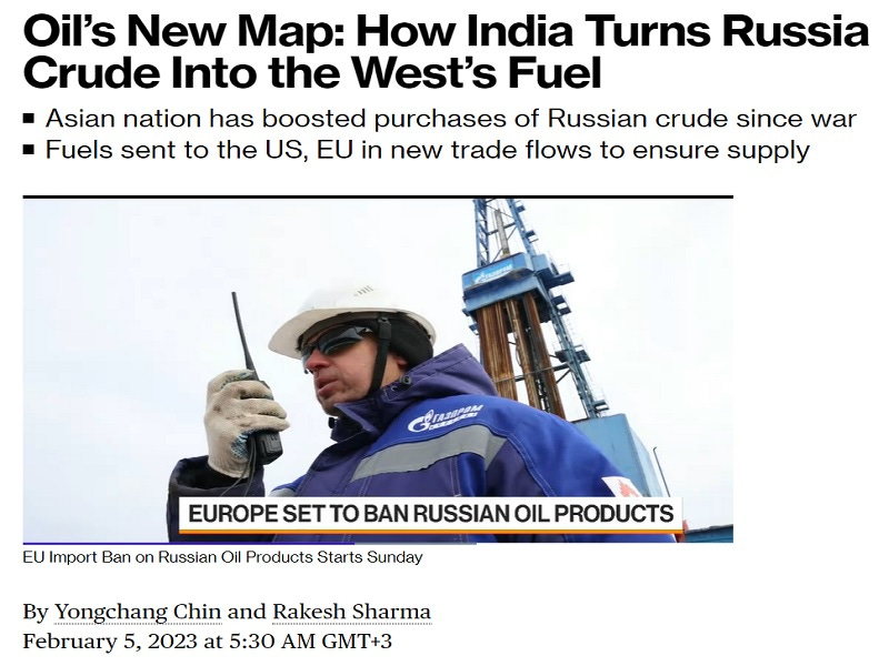 Indian media revealed in mid-January that their country had been processing and re-exporting discounted Russian oil to the West, including the US, in a move that discredited the spirit of that de facto New Cold War bloc’s anti-Russian sanctions. Most observers brushed off those reports since they went against their worldview wherein it was taken for granted that the US-led West’s Golden Billion wouldn’t ever relieve pressure on Russia by having India serve as the middleman in their oil trade.