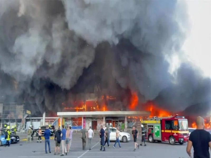 While Kremenchuk isn’t near the front, its secret arms stockpile that was recklessly located right next to a non-operating mall supplies Kiev’s forces and thus keeps the conflict unnaturally dragging on longer than if NATO wasn’t exploiting that former Soviet Republic as part of its proxy war on Russia. This explains why the RAF targeted it, after which the resultant fire spread to the neighboring building that Zelensky hysterically said was housing over 1,000 people in spite of footage showing an almost completely empty parking lot with some uniformed soldiers interspersed with the very thin crowd.