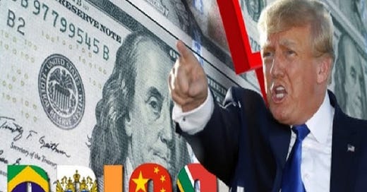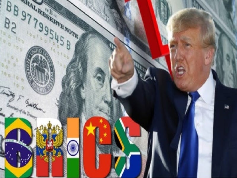 Trump's threat against BRICS shows the world that the US will lie, cheat, and steal to retain its failing supremacy at the expense of any nation that opposes it. Trump and the US are the global bullies well suited to each other. Trump is all ego, having been bankrupted 6 times at the expense of others. He is the king of spending and deficits, with no plan to reduce the country's massive debt. Being a friend of the US is more deadly than being its enemy. The USD continues to be propped up by gunboat diplomacy, and countries that subjugate themselves to it have and will pay a dear price. The hegemon is falling, kicking and screaming like big-mouth Trump, causing strife globally as its economic, social, political, infrastructure and health systems crumble by "design." Look at the disintegration of US cities, the decaying infrastructure, tent cities, the drug epidemic, AIPAC's infiltration of the nation, the brainwashed population, broken healthcare, the border crisis, and the medical vax tyranny Trump promoted at the end of his term. (on and on) The only good thing remaining there is that it mostly comprises good, hard-working citizens being torn apart by the division between two corrupt, inept political parties more alike than not. What sane nation would want to emulate America? Pardon my digression. lol
