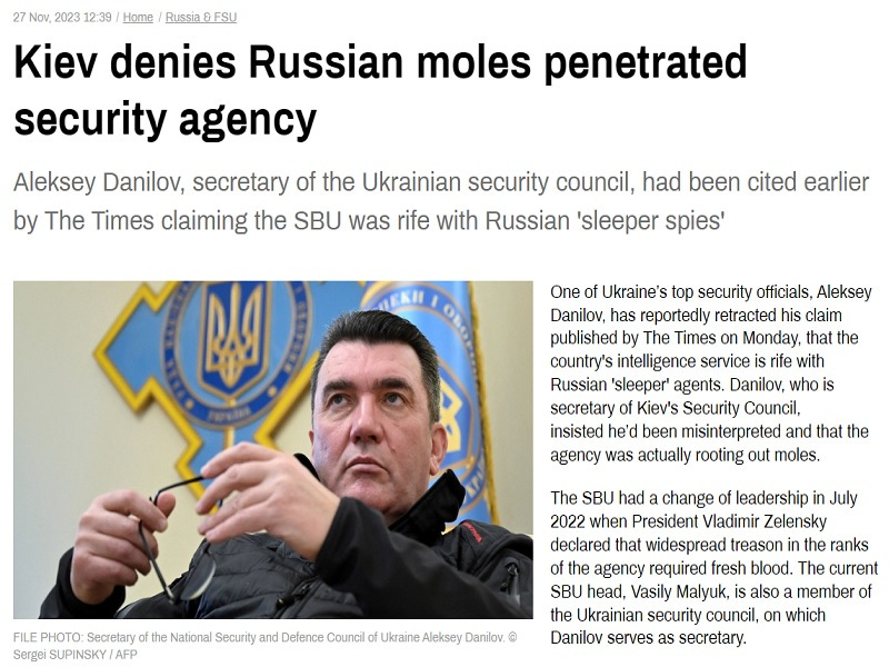 Ukrainian National Security Council chief Alexey Danilov claimed that the Times of London misinterpreted his words when they quoted him as saying that the secret police (SBU) are still supposedly rife with Russian spies. It’s extremely unlikely that a newspaper of record such as this one would do that, however, especially about a subject as sensitive as this one. For that reason, it was probably the case that he was forced by the SBU to retract his statement under pressure from them.
