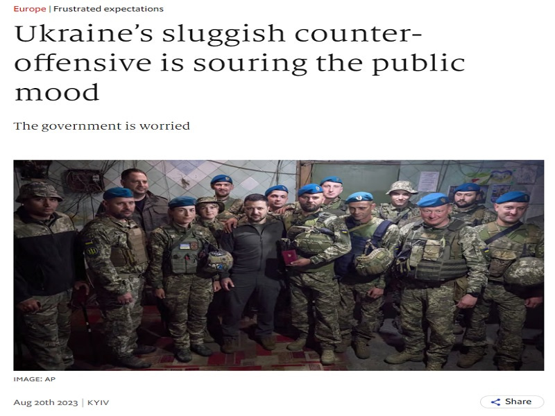 Average Westerners were told for the past 18 months how fearless and optimistic the Ukrainians were, which was done to convince the former to continue supporting their leaders’ decision to fund the latter, but now the Mainstream Media (MSM) is telling them the complete opposite. The Washington Post wrote earlier this month that “Slow counteroffensive darkens mood in Ukraine”, which was followed by The Economist declaring that “Ukraine’s sluggish counter-offensive is souring the public mood”.