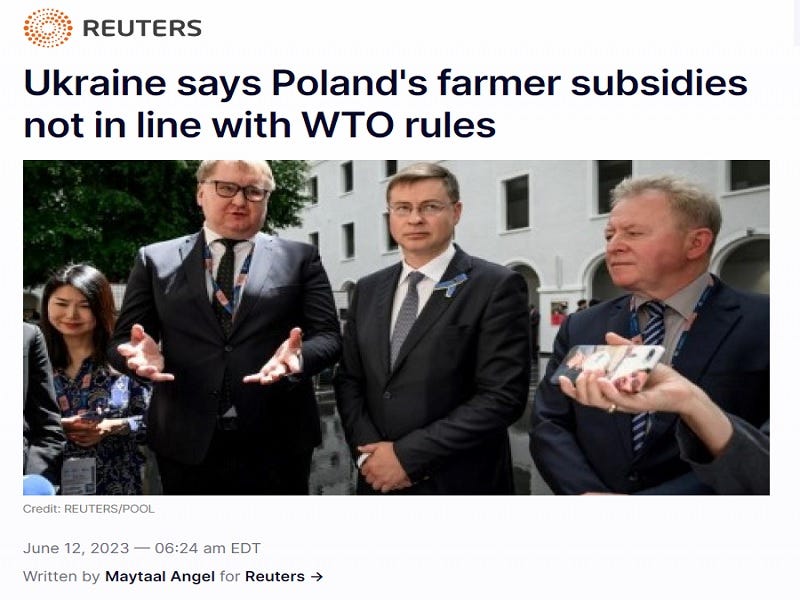 Ukrainian Deputy Economy Minister Taras Kachka complained to the International Grains Council conference in London on Monday about the subsidies that Poland gave its farmers to help them stay afloat amidst the recent glut of his country’s grain in their domestic market. Not only did he claim that “These subsidies go far beyond what is allowed by WTO rules”, but he also fearmongered that “(They) may be a minor development but can be a source of (trade) disturbances around the globe.”