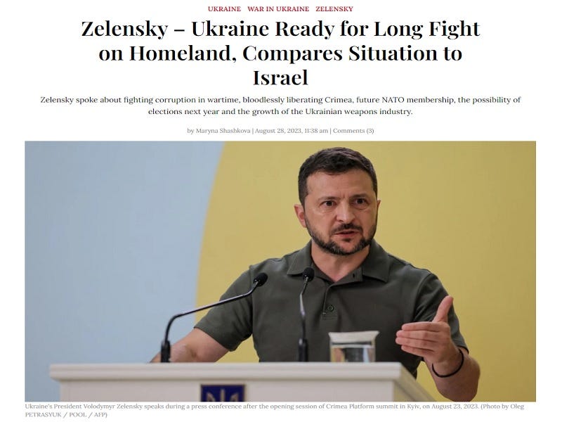 The first takeaway from Zelensky’s interview is that the counteroffensive failed, which is why he’s preparing the public for freezing the conflict. This is being achieved by already declaring victory, suggesting that Crimea can be reconquered through political means instead of military ones on the pretext of saving his soldiers’ lives, and referencing the Israeli-Palestinian conflict as a future model. Ahead of that scenario, he wants to reassure his people that the West will still ensure their security.